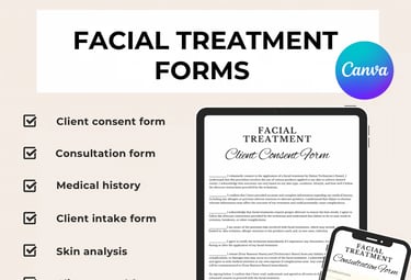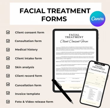 Editable Facial Consent & Client Intake Forms Bundle for Estheticians – Skin Analysis & Medical History Templates